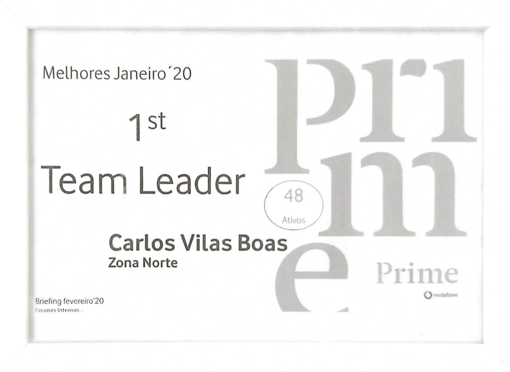 1º Lugar Team Leader Zona Norte Janeiro 2020